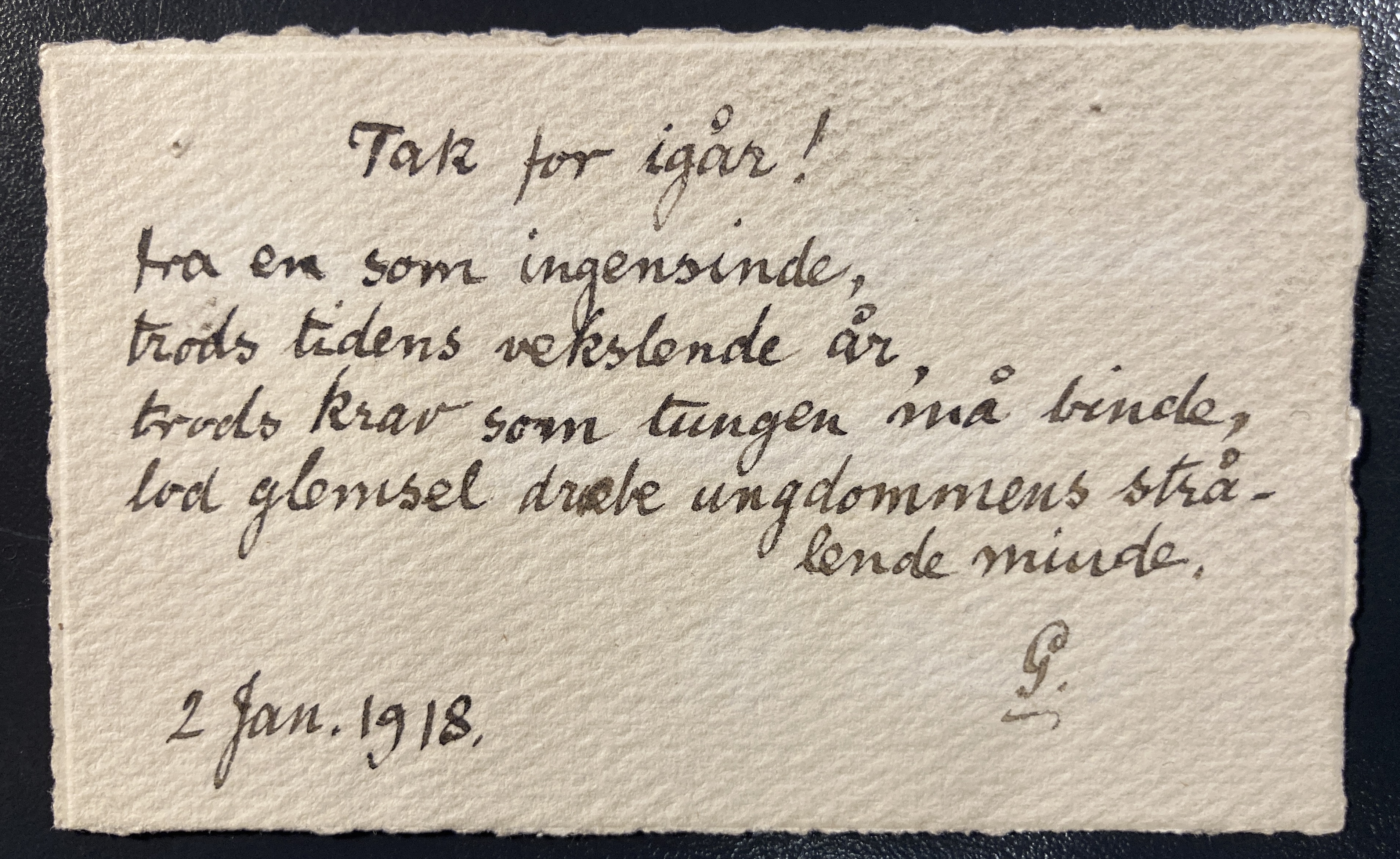 En tak for nytårsdag og et digt om ungdomsminder.